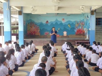 นางสาวทิพย์นภา นิเวศกูล รองผู้อำนวยการโรงเรียน พบปะกับนักเรียนชั้นมัธยมศึกษาปีที่ 1-3